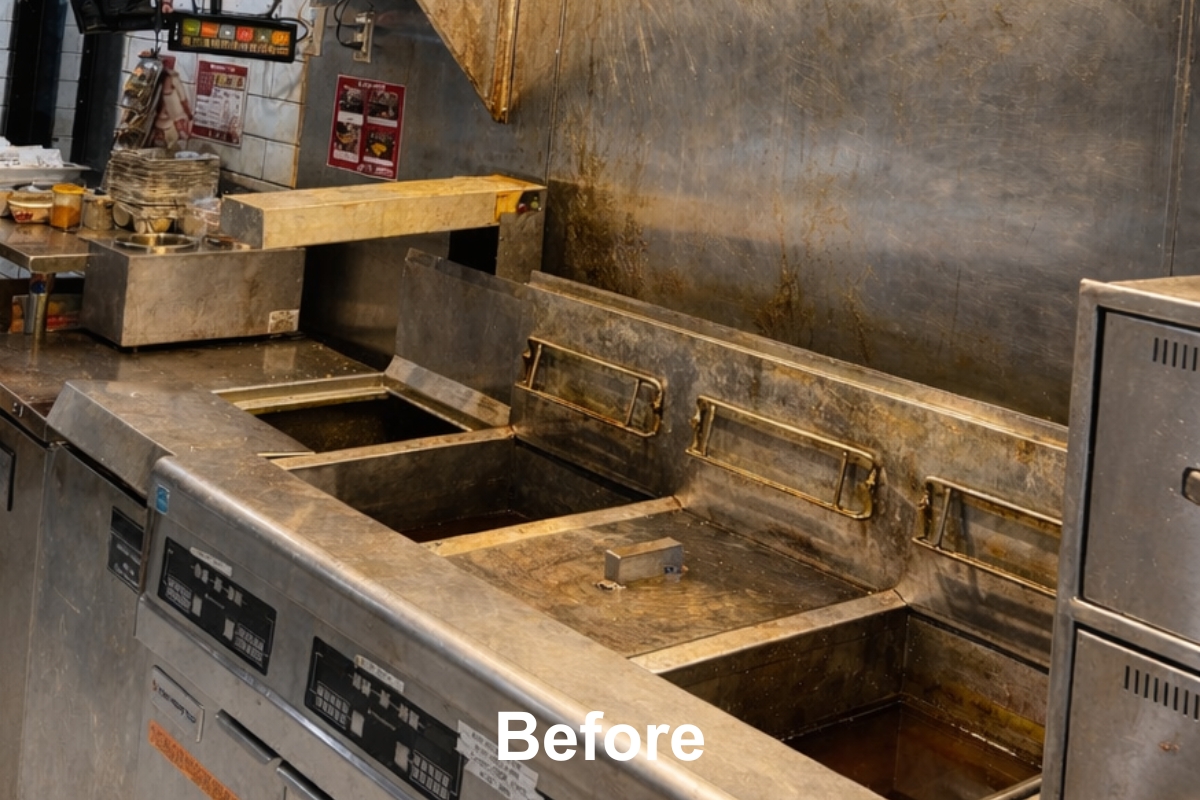 Cleaning removes grease buildup in critical areas that are often overlooked, helping to prevent fires, fines, and temporary closures.